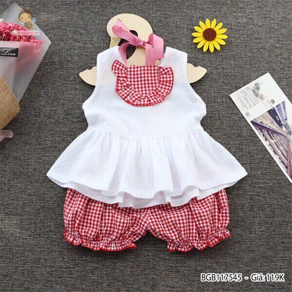 Be the first to review “Set áo linen bèo túi trước quần bí caro dễ thương cho bé gái”